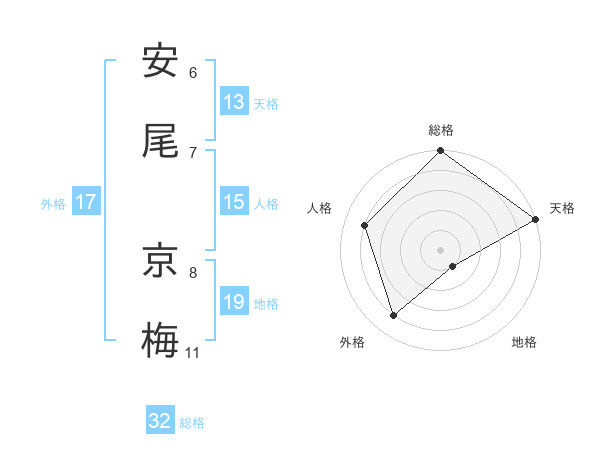 安尾 京梅さんの総格は32画の5点!