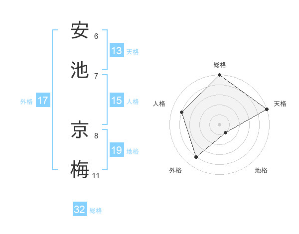 安池 京梅さんの総格は32画の5点!