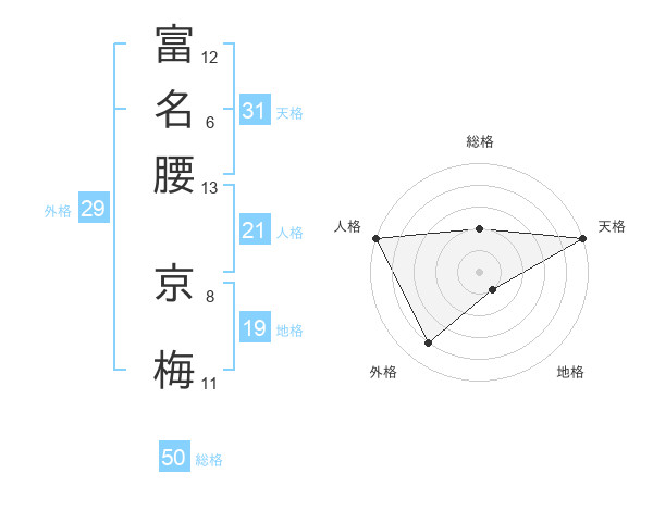 富名腰 京梅さんを姓名の画数から五運を鑑定