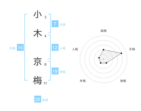 小木 京梅さんの総格は26画の2点!