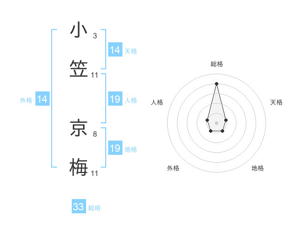 小笠 京梅さんの総格は33画の4点!