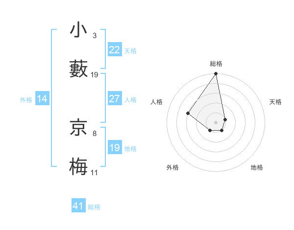 小藪 京梅さんの総格は41画の5点!