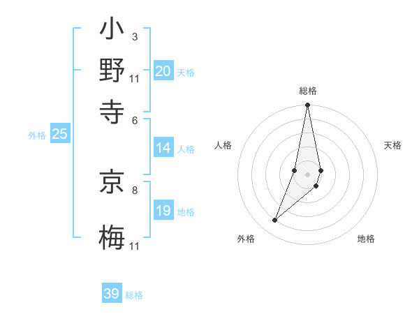 小野寺 京梅さんを姓名の画数から五運を鑑定