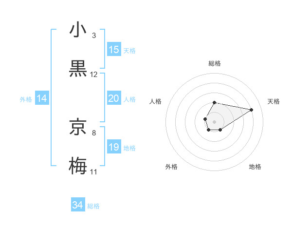 小黒 京梅さんの総格は34画の2点!