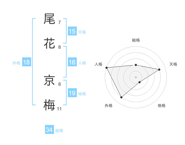 尾花 京梅さんを姓名の画数から五運を鑑定