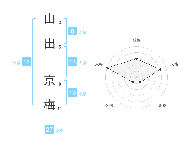 山出 京梅さんの総格は27画の3点!