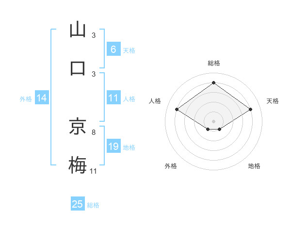 山口 京梅さんの総格は25画の4点!
