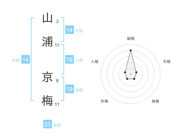 山浦 京梅さんの総格は33画の4点!