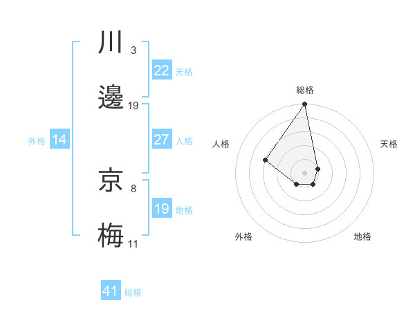 川邊 京梅さんを姓名の画数から五運を鑑定