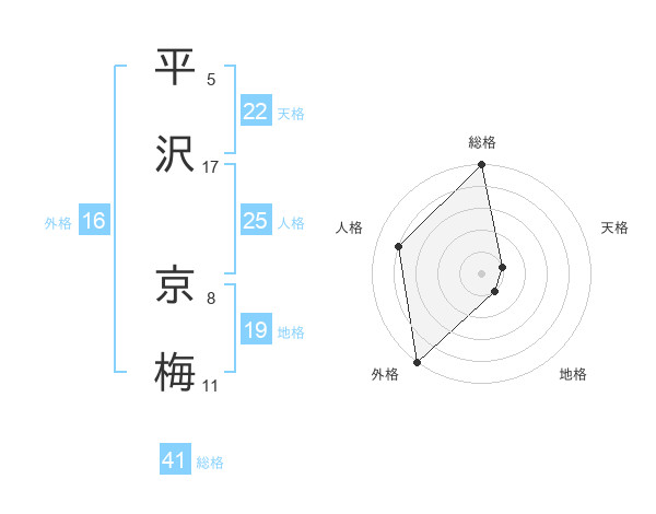 平沢 京梅さんの天格は22画の1点!