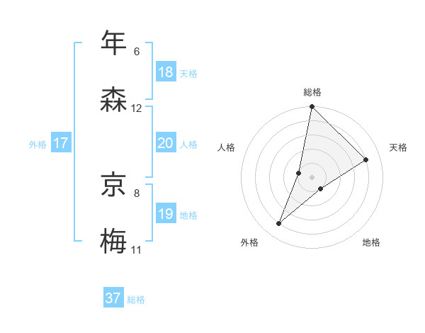 年森 京梅さんの総格は37画の5点!