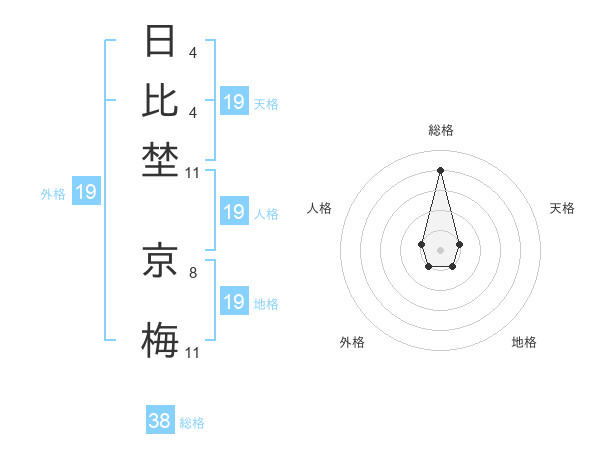 日比埜 京梅さんの総格は38画の4点!