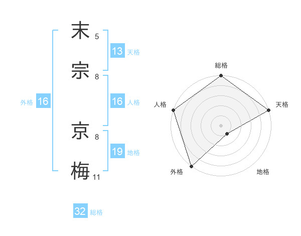 末宗 京梅さんを姓名の画数から五運を鑑定
