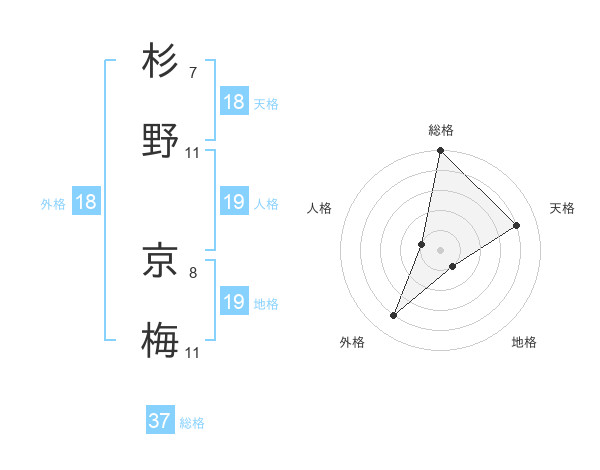 杉野 京梅さんの総格は37画の5点!