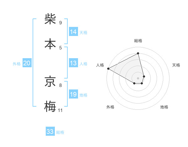 柴本 京梅さんの総格は33画の4点!