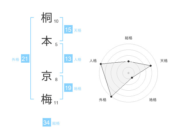 桐本 京梅さんを姓名の画数から五運を鑑定