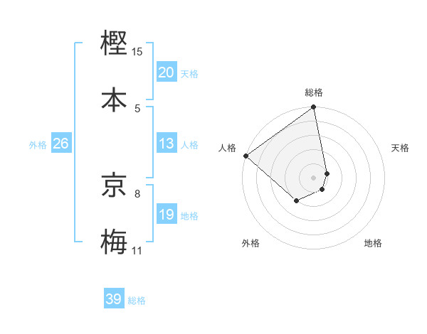 樫本 京梅さんを姓名の画数から五運を鑑定