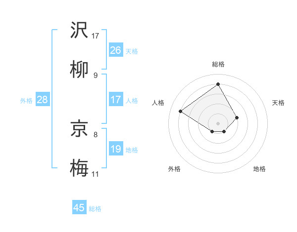 沢柳 京梅さんを姓名の画数から五運を鑑定