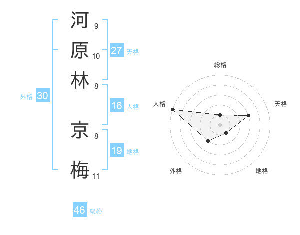 河原林 京梅さんの総格は46画の1点!