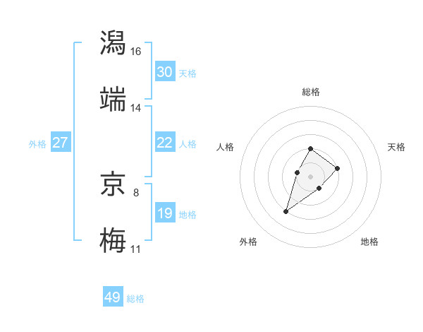 潟端 京梅さんを姓名の画数から五運を鑑定