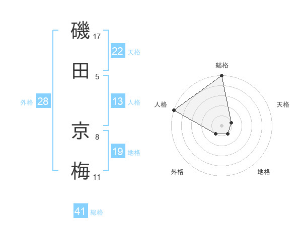 磯田 京梅さんを姓名の画数から五運を鑑定