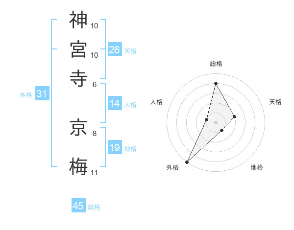 神宮寺 京梅さんの総格は45画の4点!