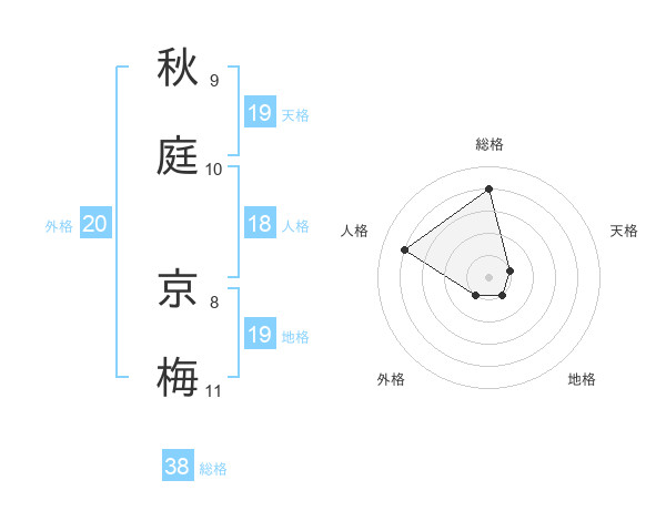 秋庭 京梅さんを姓名の画数から五運を鑑定