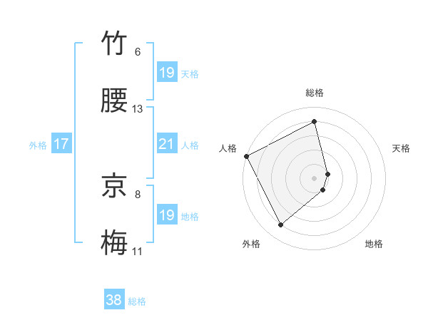 竹腰 京梅さんの総格は38画の4点!
