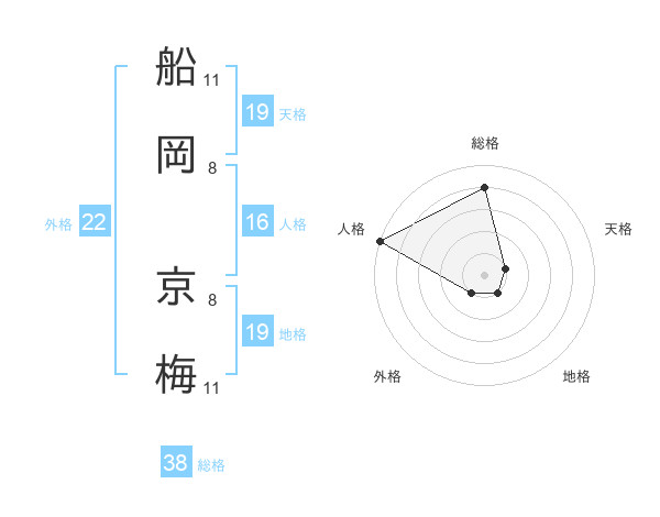 船岡 京梅さんを姓名の画数から五運を鑑定