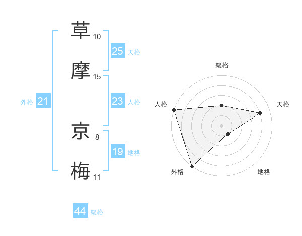 草摩 京梅さんを姓名の画数から五運を鑑定