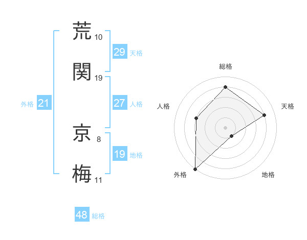荒関 京梅さんの総格は48画の4点!