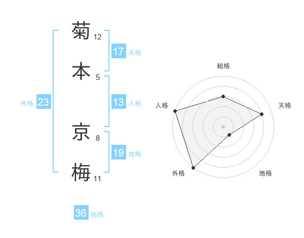 菊本 京梅さんの外格は23画の5点!