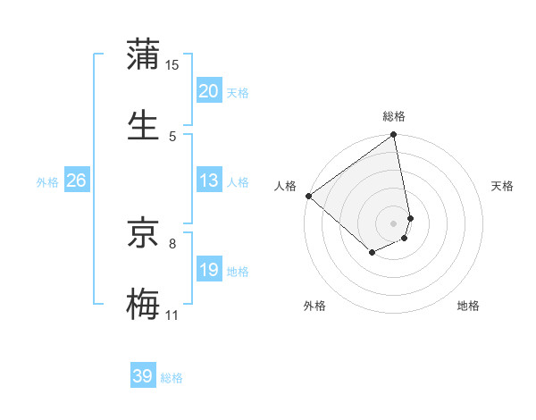 蒲生 京梅さんの総格は39画の5点!