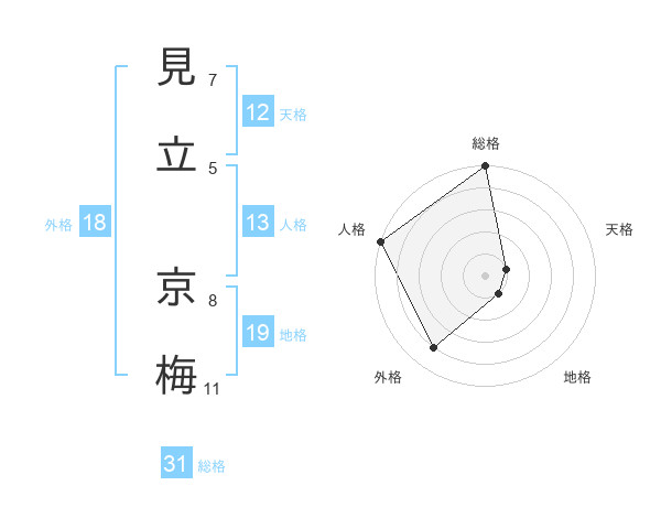 見立 京梅さんの総格は31画の5点!