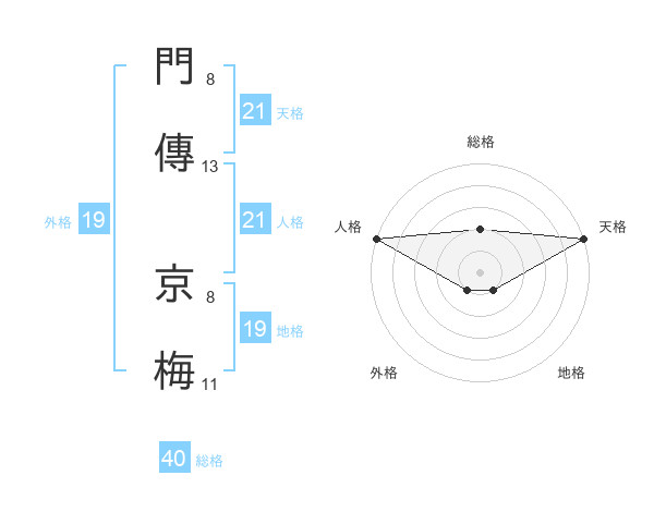 門傳 京梅さんの総格は40画の2点!