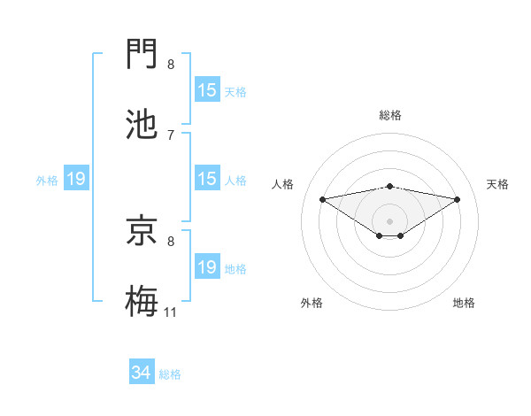 門池 京梅さんの総格は34画の2点!