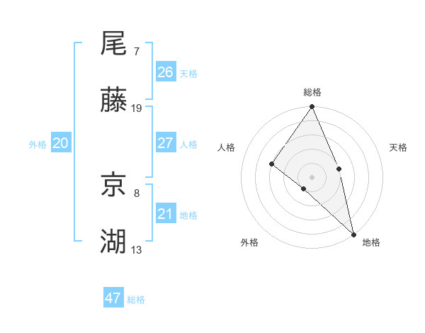 尾藤 京湖さんの総格は47画の5点!