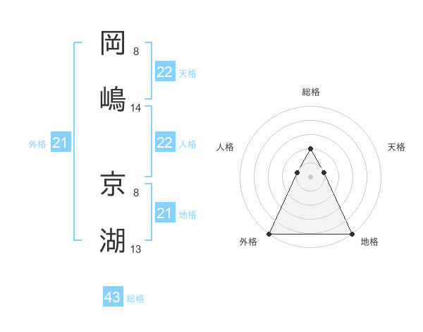 岡嶋 京湖さんを姓名の画数から五運を鑑定