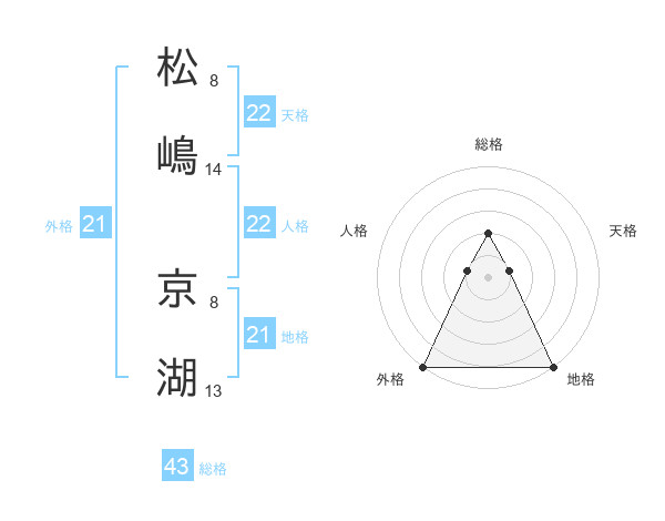 松嶋 京湖さんの外格は21画の5点!