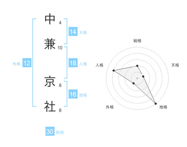 中兼 京社さんの総格は30画の2点!