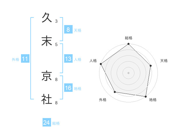 久末 京社さんの総格は24画の5点!