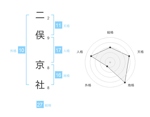 二俣 京社さんの天格は11画の4点!