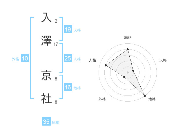 入澤 京社さんの総格は35画の4点!