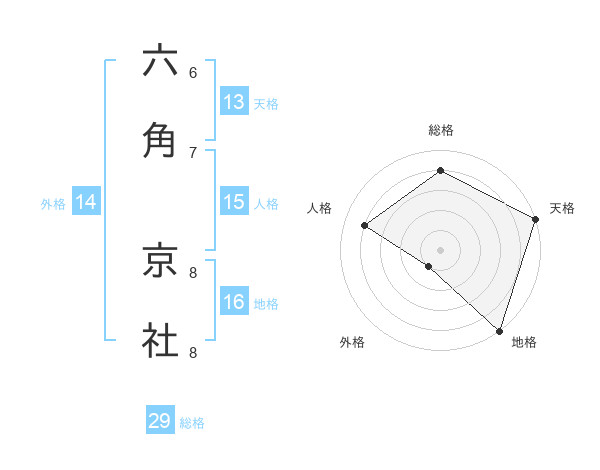 六角 京社さんの総格は29画の4点!