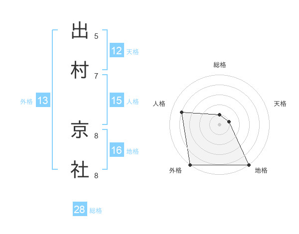 出村 京社さんの外格は13画の5点!