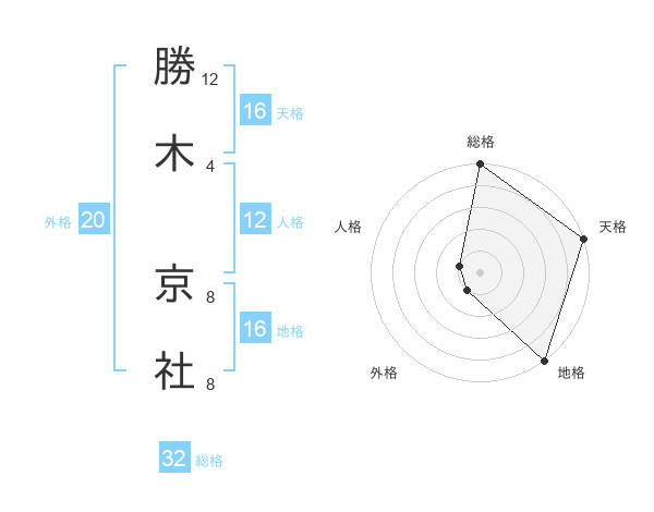 勝木 京社さんの天格は16画の5点!