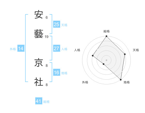安藝 京社さんの総格は41画の5点!