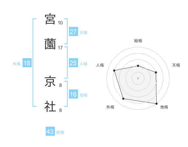 宮薗 京社さんの総格は43画の2点!