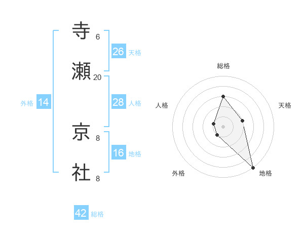 寺瀬 京社さんを姓名の画数から五運を鑑定