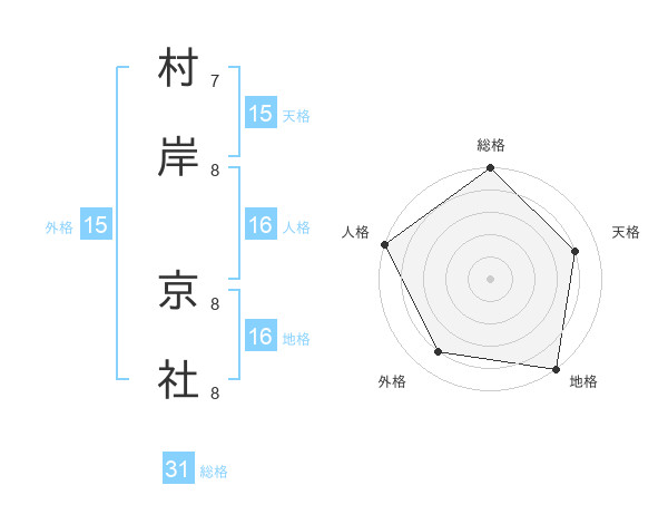 村岸 京社さんの総格は31画の5点!